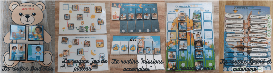 Un kit de routines matin et soir avec 5 types de routines différentes pour s'adapter à votre famille, et des cartes bonus.